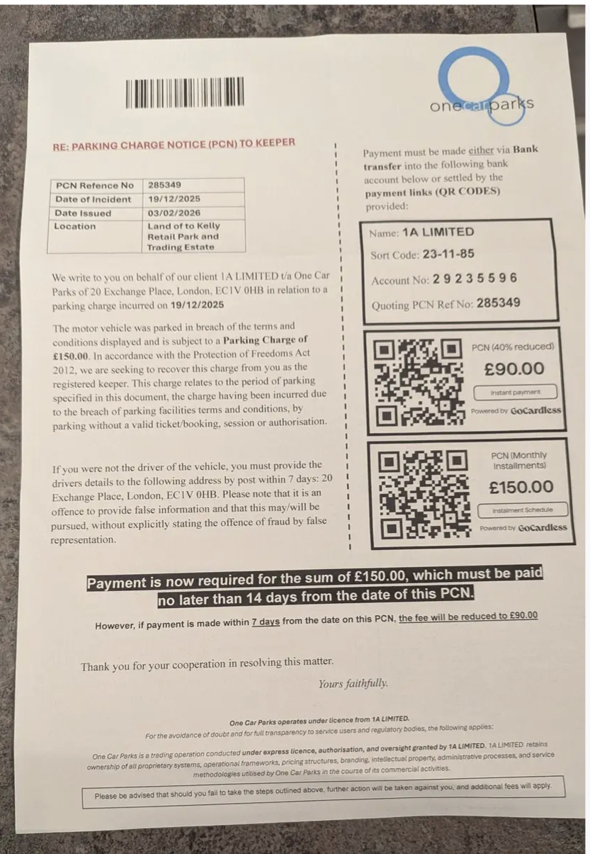 PRIVATE 'PCN'? DON'T PAY BUT DON'T IGNORE IT (except N.Ireland).