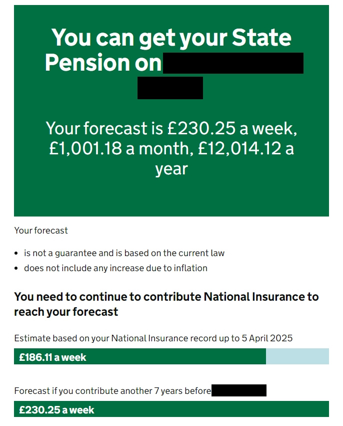 The problem for people here is that you keep talking about "35 years" which is of no relevance to you whatsoever. The only thing that is now relevant is number of years that you need to reach the full amount which is 7 - your full amount gap, £44.41, is equivalent to 6.71 years, if your forecast was 35 years based that amount would divide exactly by £6.58.