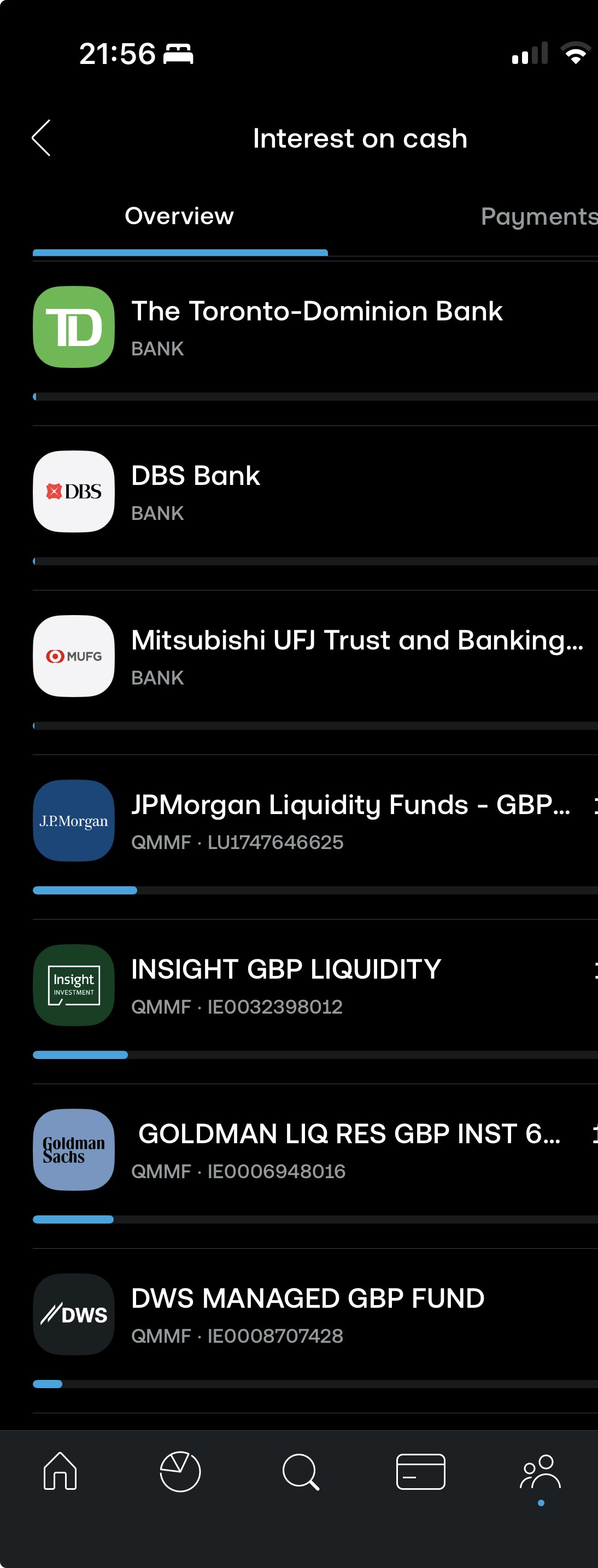 If it's a QMMF it clearly shows it. Snapshot of GBP which is currently split between 14 banks and 6 QMMF.