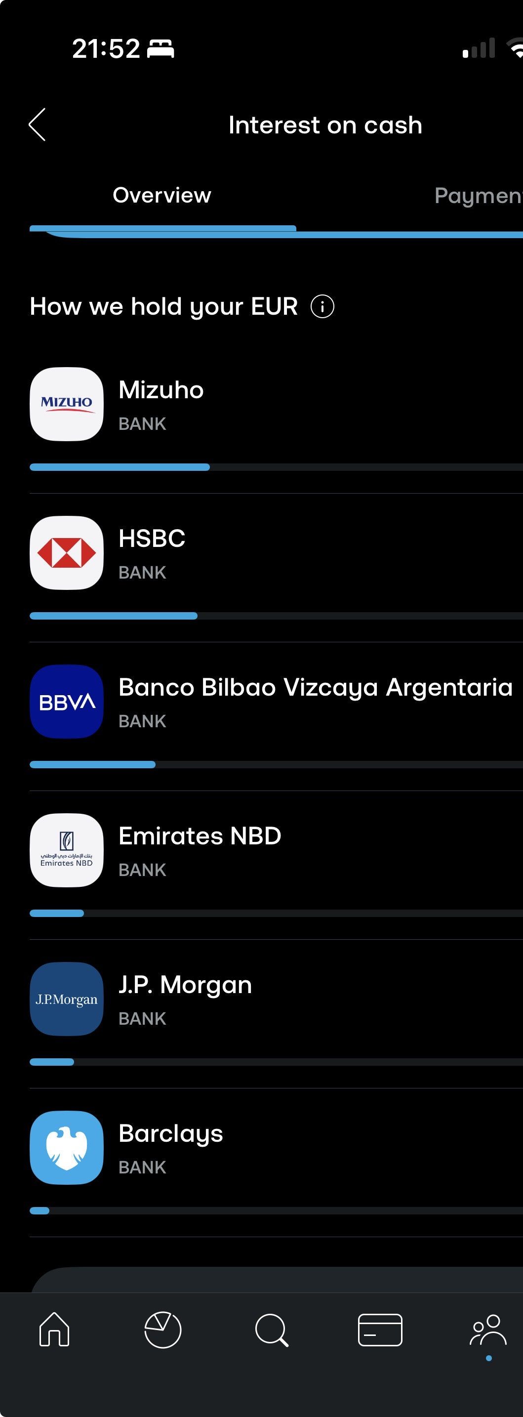 EUR account currently split between 6 banks.