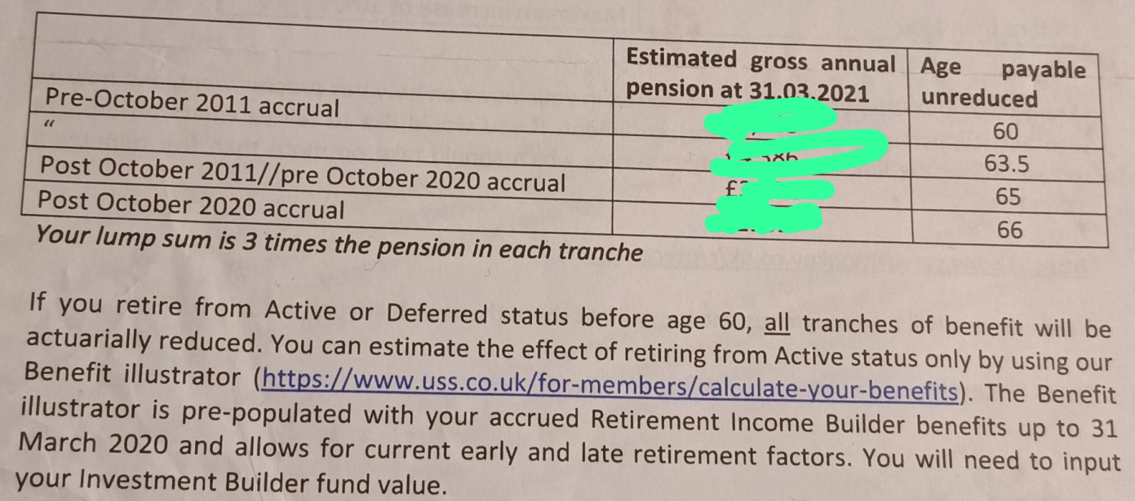 In my example, the conculsion was the same as your, taking the pension earlier resulted in more pension payout overall. The USS scheme administrators should be able to give specific figures and confirmations for your pension.