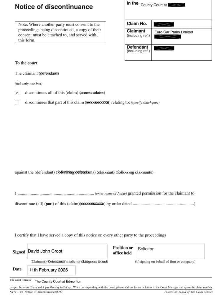 I received a parking ticket from Euro Car Parks in March 2024. The incident was in Scotland and I was not the driver so I ignored all the letters as is standard. A few months later I was contacted by DCB Legal who said they would be pursuing me for 330£ - can't remember how they got to that figure. At this point I just continued to ignore and had not read the excellent threads on this forum. In the summer of 2025, I was contacted by the county court and DCB said they'd continue pursuing despite me saying I was not the driver and in Scotland I do not have to legally tell them who was driving.