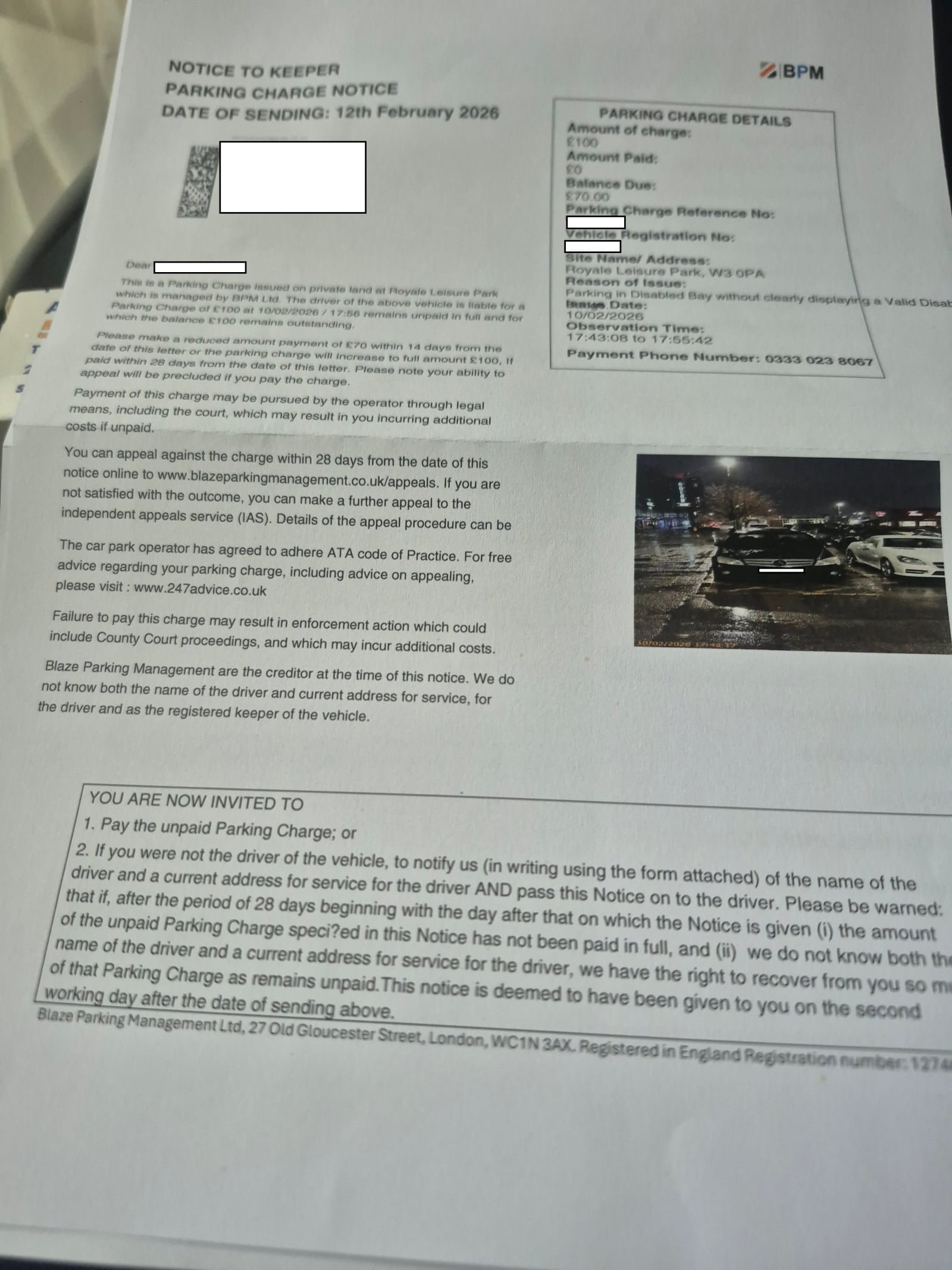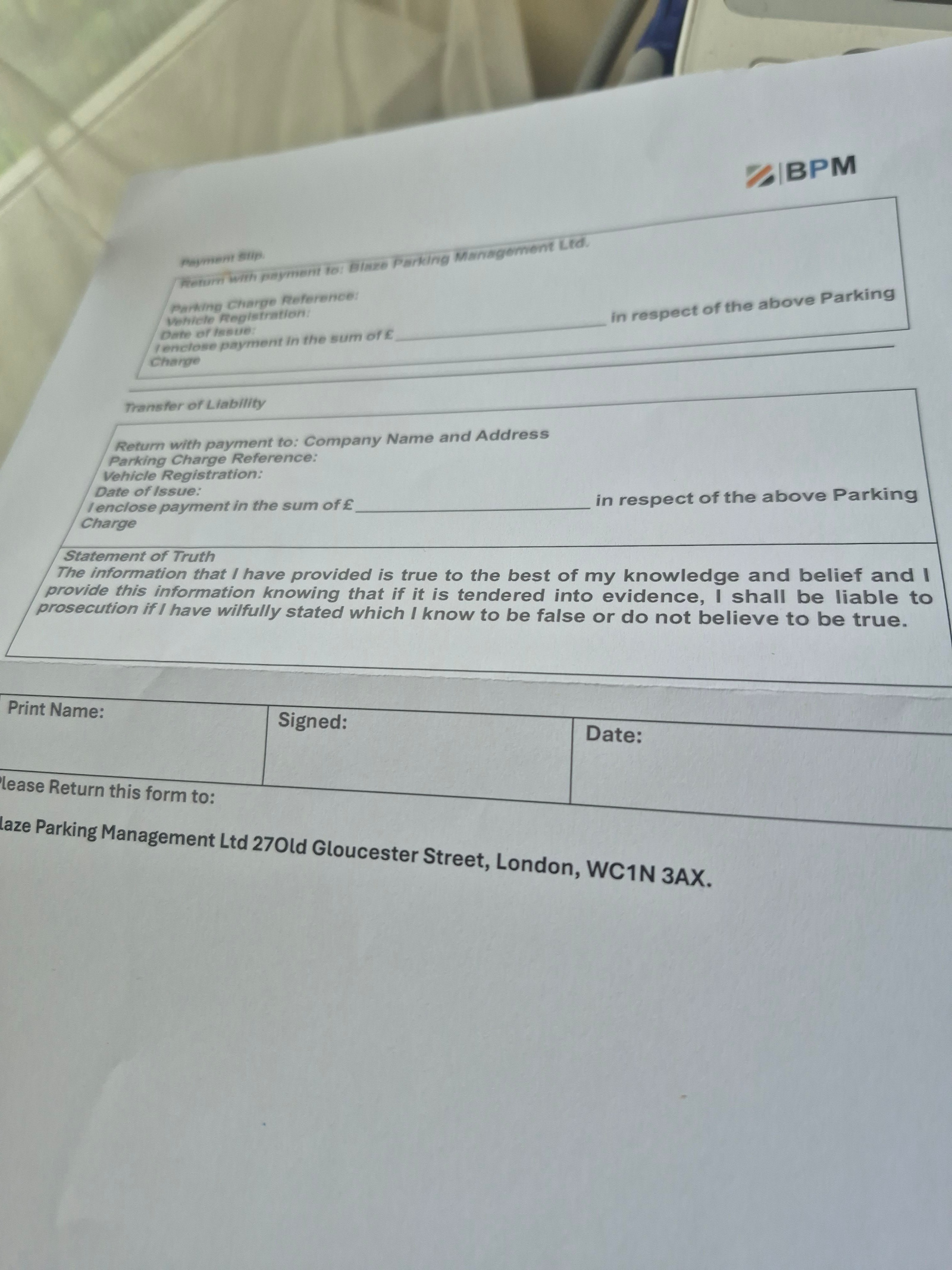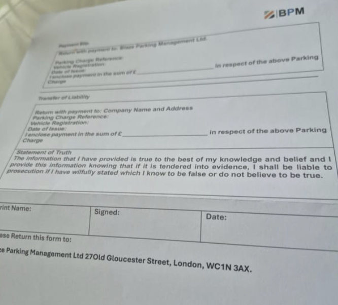 Blaze Parking Management?! Who? A non-entity indeed. But it is POFA worded.The keeper could just ignore them but…