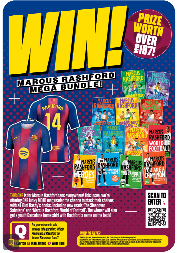 This issue, we’re offering ONE lucky MOTD Mag reader the chance to stack their shelves with all 13 of Rashy’s books, including new reads ‘The Sleepover Sabotage’ and ‘Marcus Rashford: World of Football’.