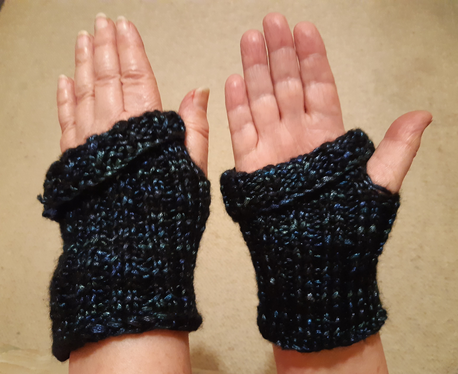 My shiny gloves are finished, not sure the colour and shininess show so well in a photo! :