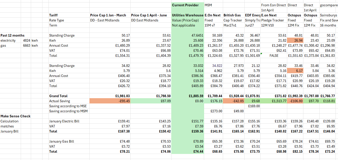 According to my numbers it looks like a switch to E-on might be a good idea but then I'm not sure if I can trust those numbers since they came from MSM. Also is fixing at that even worth the risk in case the cap comes down as we go into the summer ?.