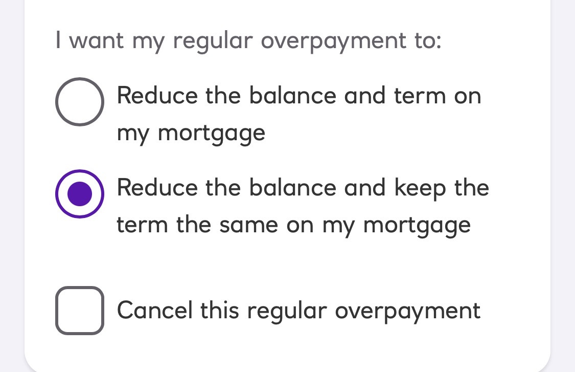 I have NatWest Mortgage and when making additional payments online it asks if you would like to reduce payments or the term. There is an option to select. It works really well.