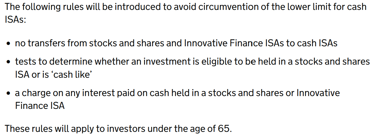 I was listening to this weeks “This is Money” podcast and I heard someone say that from April 2027, any money paid into a S&S ISA, won’t ever be transferable to a cash ISA.
