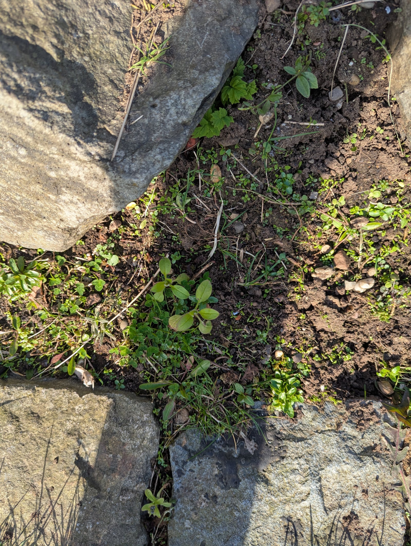Pruning is my next job. There's lots of these green bits between the rocks, what are they?