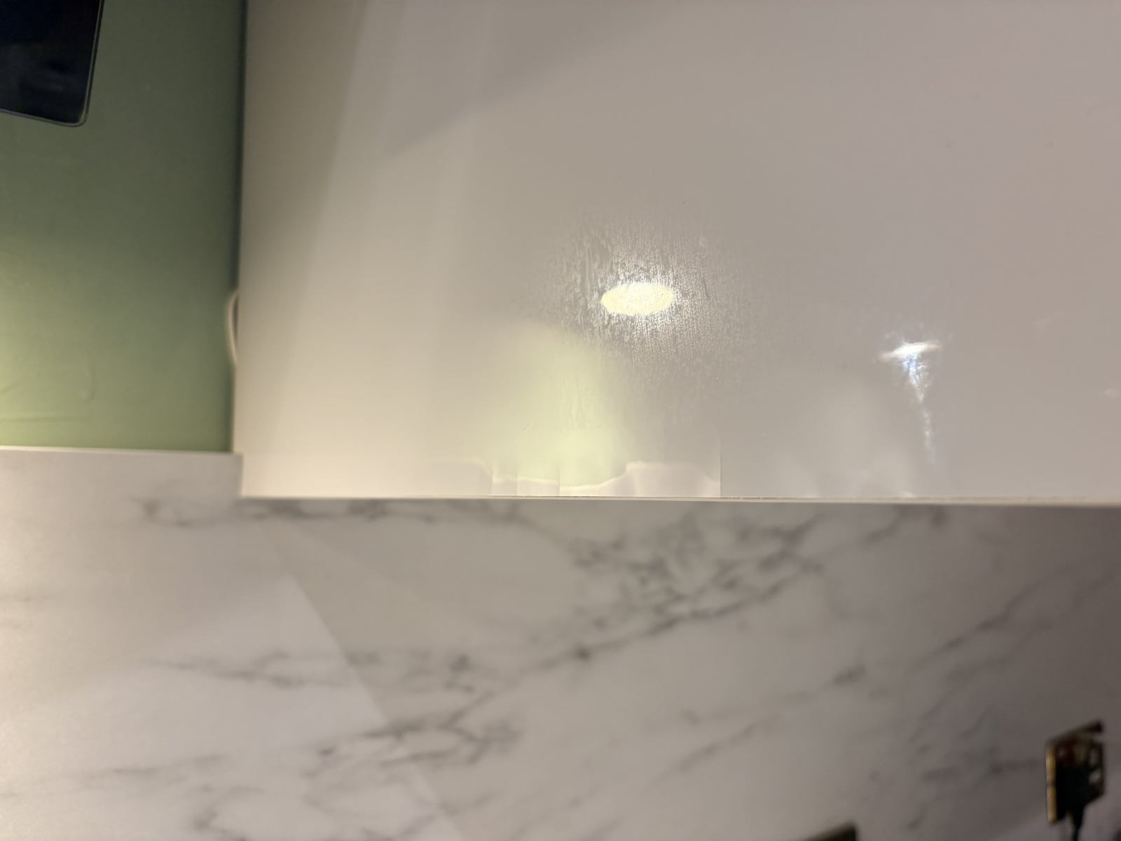 We recently noticed some small bumps along the bottom edge of the panel which is adjacent to the hob and extractor but there is a space so not directly over the hob. On closer inspection we could see a few hairline cracks