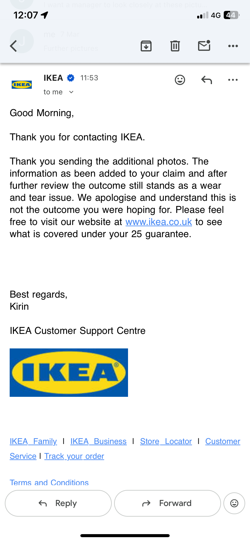 'We’ve asked them to escalate further but they have said no, that’s the end of the matter as it’s been looked at by a senior technician…'