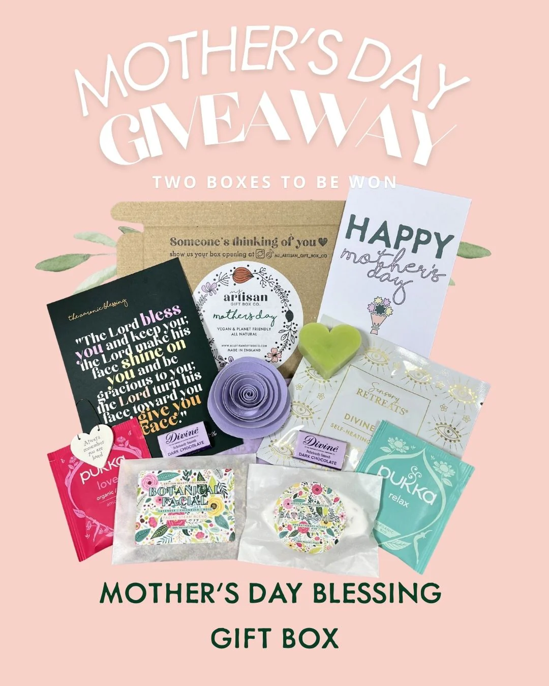 In this giveaway there will be two prizes, each winner receiving one of these gorgeous Mother's day blessing boxes worth £15.95 plus the cost of postage.