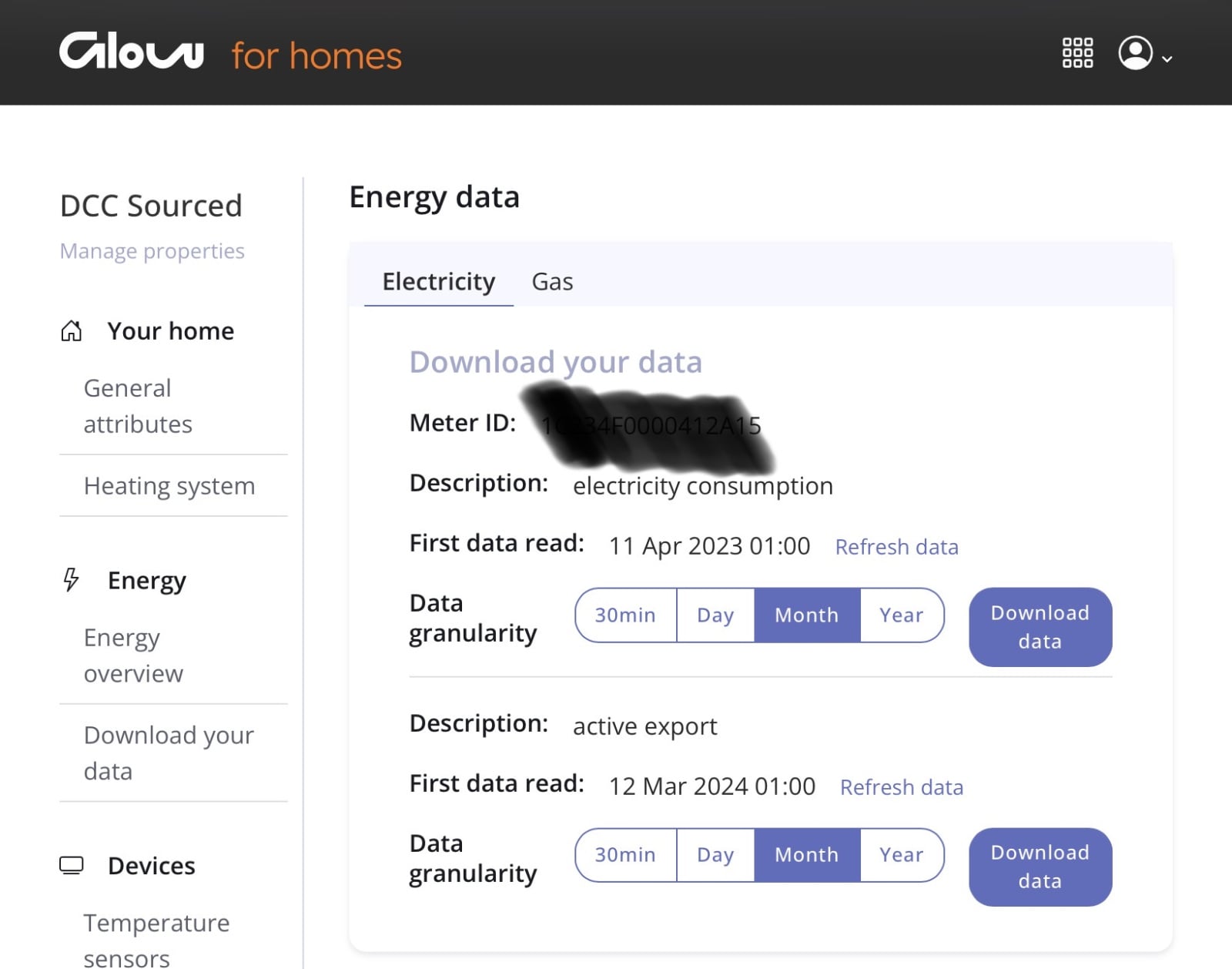 The Meter ID is a 16 digit hexadecimal number written on your meter. Presumably this is something that Bright can access from the DCC. It is shown on the Glowmarkt web interface but I can't find it in the Bright app.