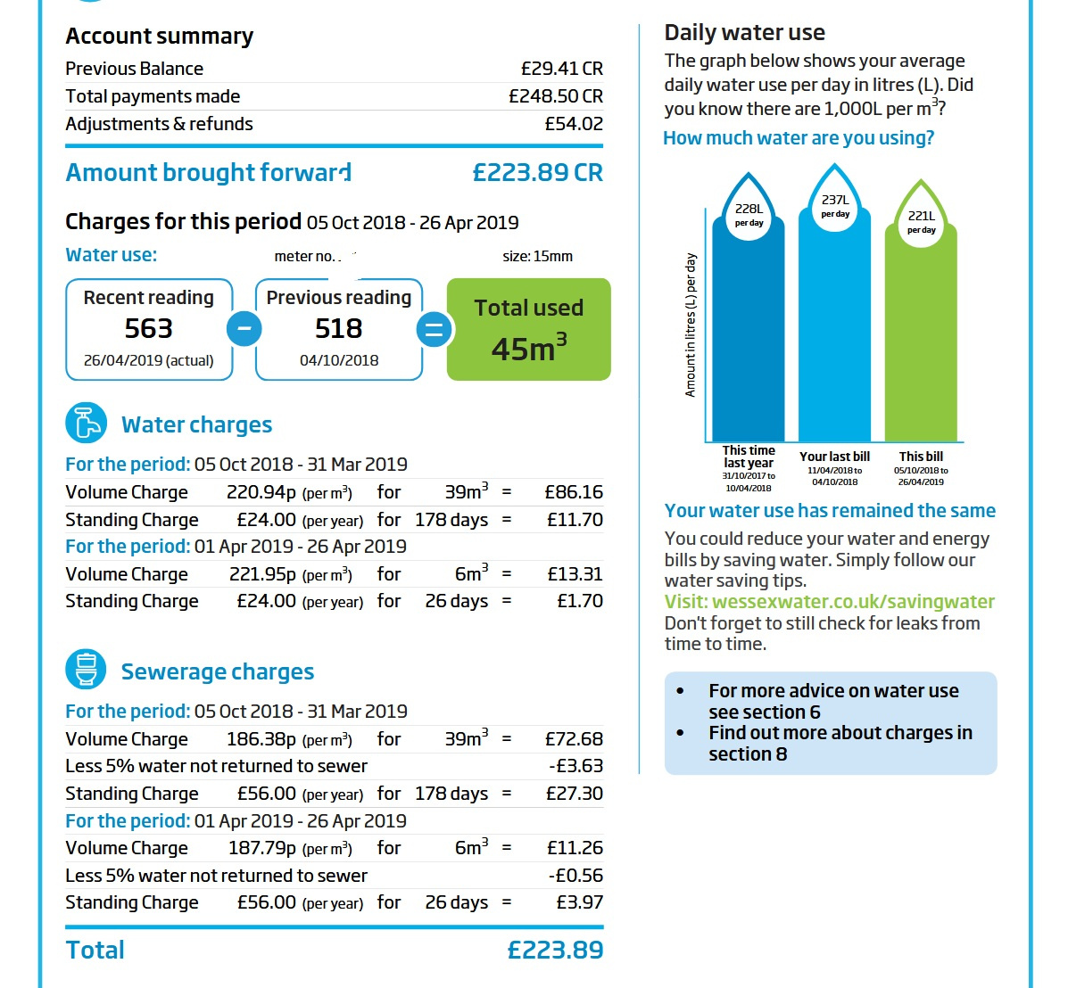 Sometime between that bill and now your metered usage has dropped to 7 cubic metres per bill. That's what's odd about the current situation.