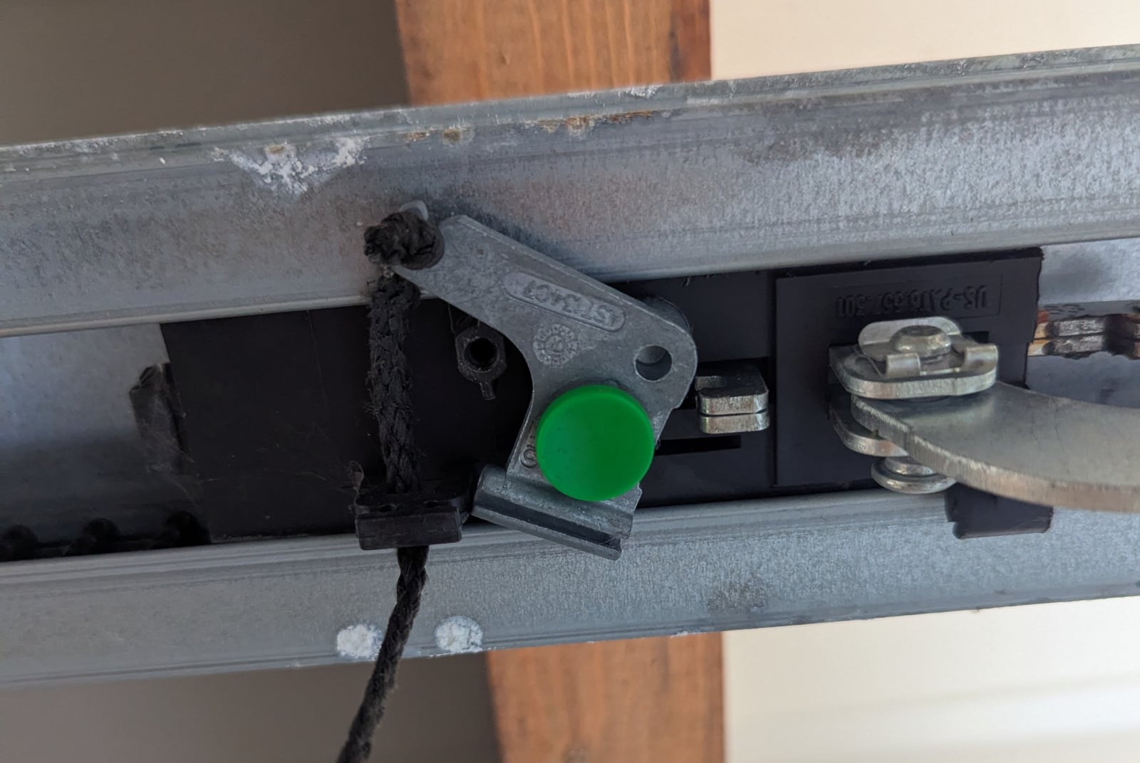 The actual motor runs fine, and responds to the remote. However, the belt doesn't engage with the presumably-toothed pawl in the mechanism in the boom.