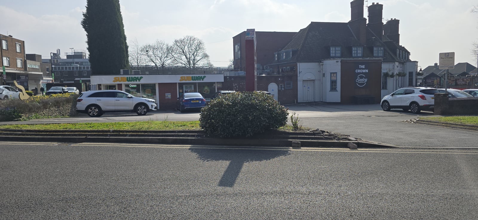 You need to get in there to show no delineation to tell people that the bays on the left are not covered by the P entrance sign 'Pay & Display' offer.