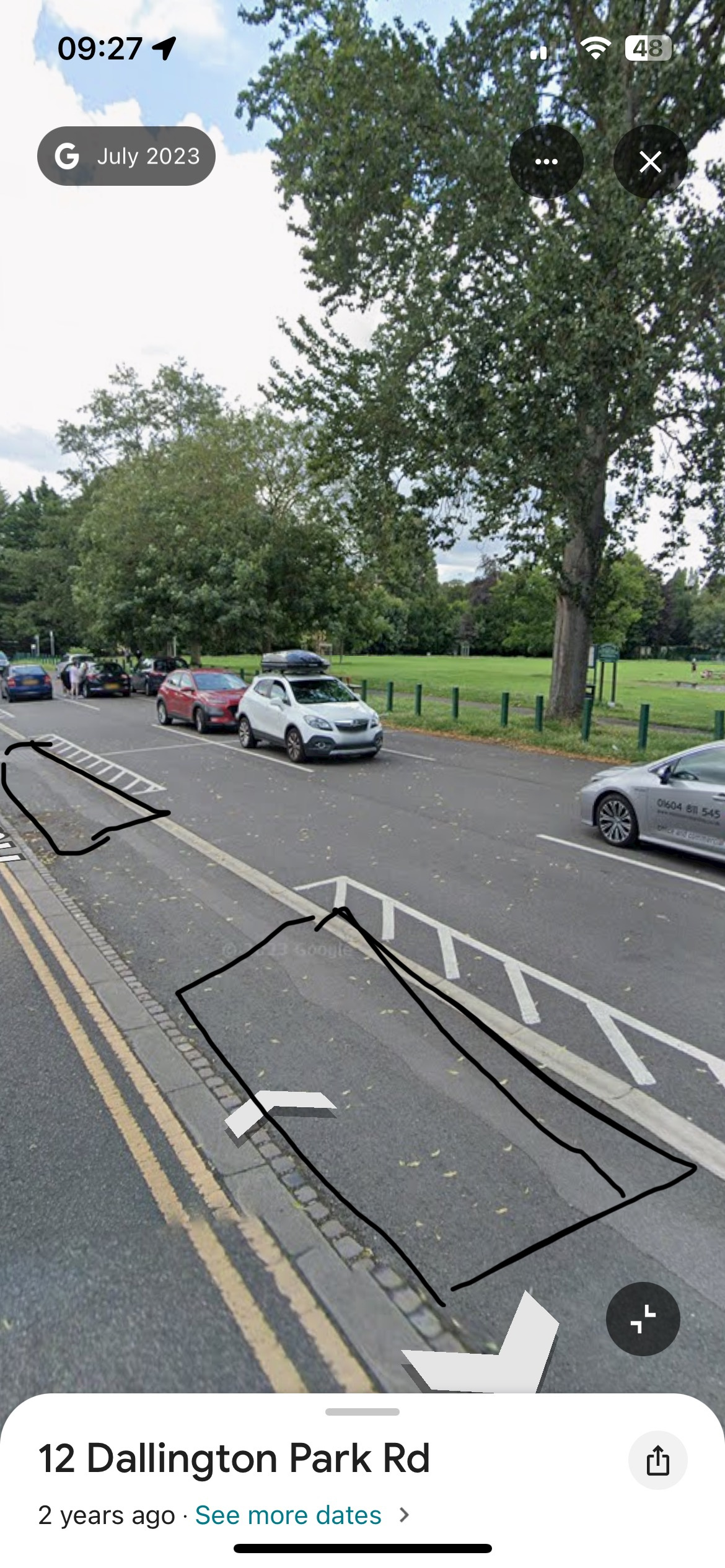 hi all. Not sure if anyone can help here or not but I had this the other day from parking not within a bay. A case of something people do every Saturday during grassroots football games but got a ticket this time. Google view shows where I and others had parked outside of marked bays