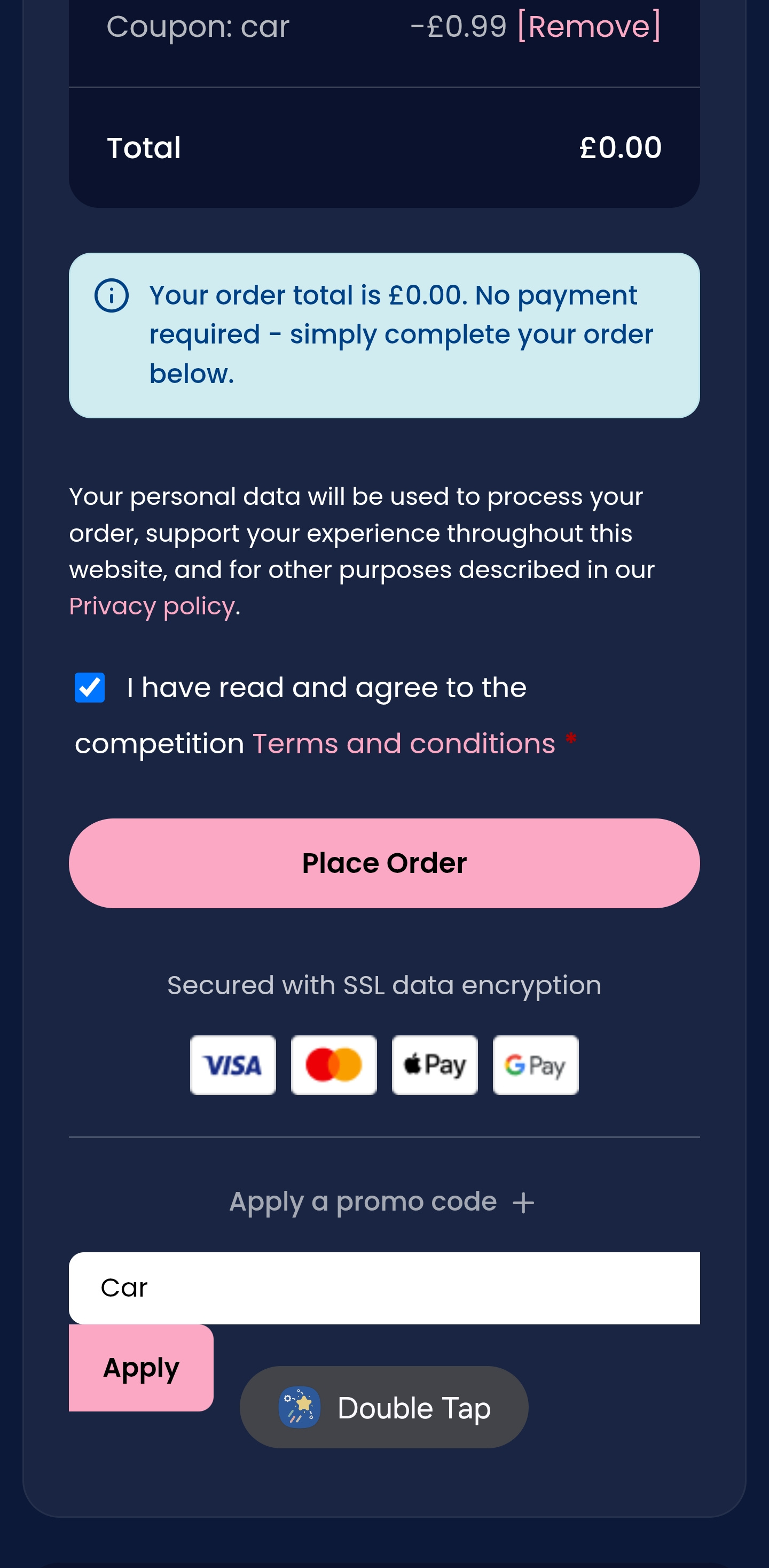 I managed to enter using the coupon code