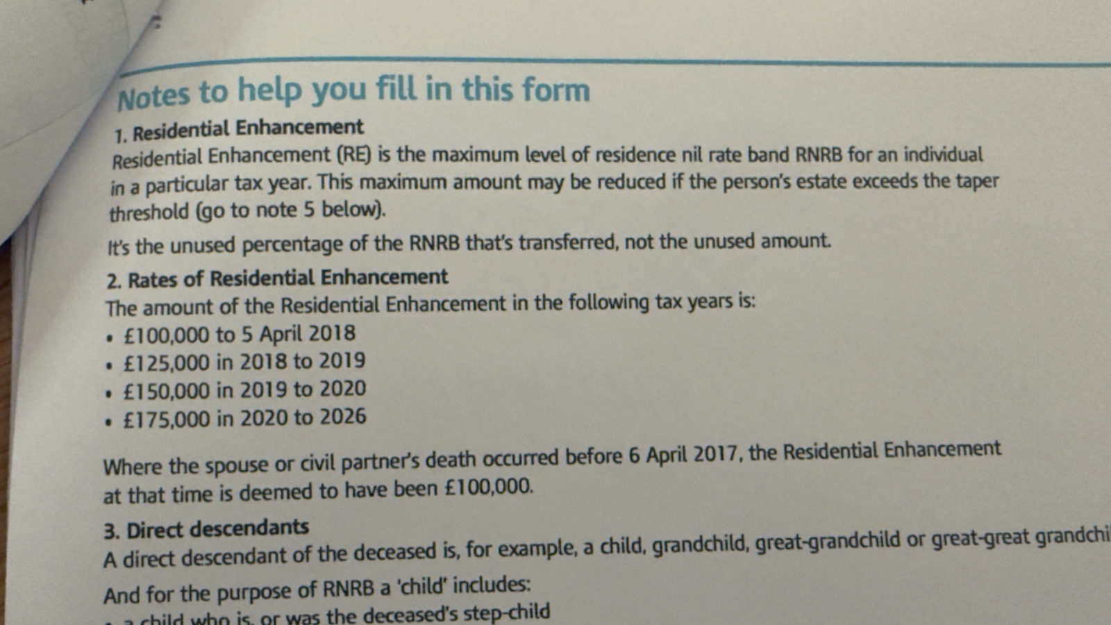 My reading of the notes to IHT436 (photo attached) leads me to conclude that since my mother died before 2017 the maximum residential enhancement which can be claimed is £100,000. I’m struggling to see how a higher transfer of the Residential Nil Rate Band could be claimed. Any further guidance much appreciated.