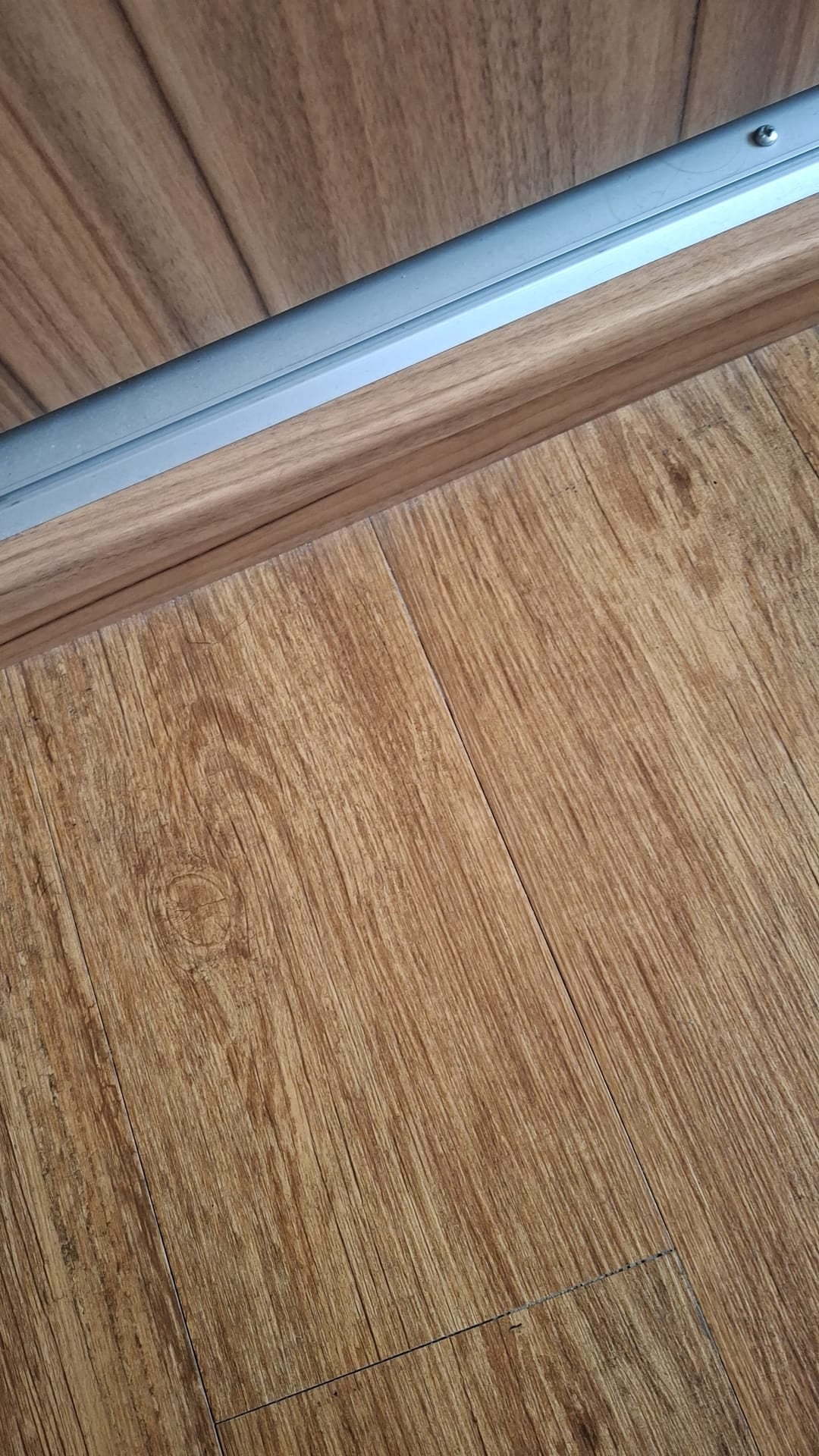 is there a bar in the doorway covering the join between this and whatever is on the hallway floor? If so, unscrew it so you can see the edge of the floor material.