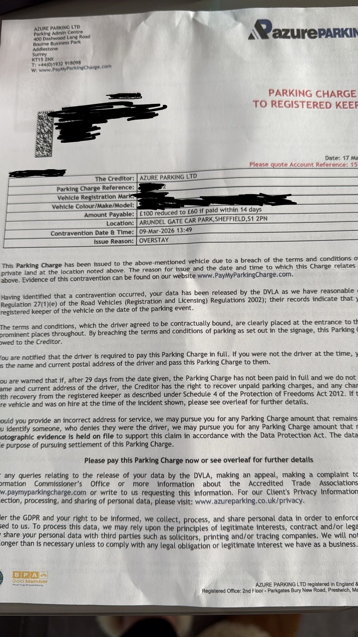 Received a parking charge notice this morning for an incident on the 9th March. I'm more asking if I have a leg to stand on here because to be fair this notice seems fair albeit harsh. The letter was dated 17/03 but only received this morning.