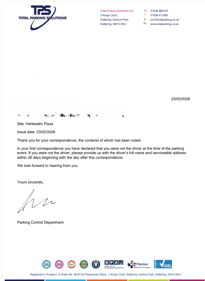 "I confirm that I was not the driver of the vehicle at the time of the alleged parking contravention. However, I am under no legal obligation to provide the driver’s details"
