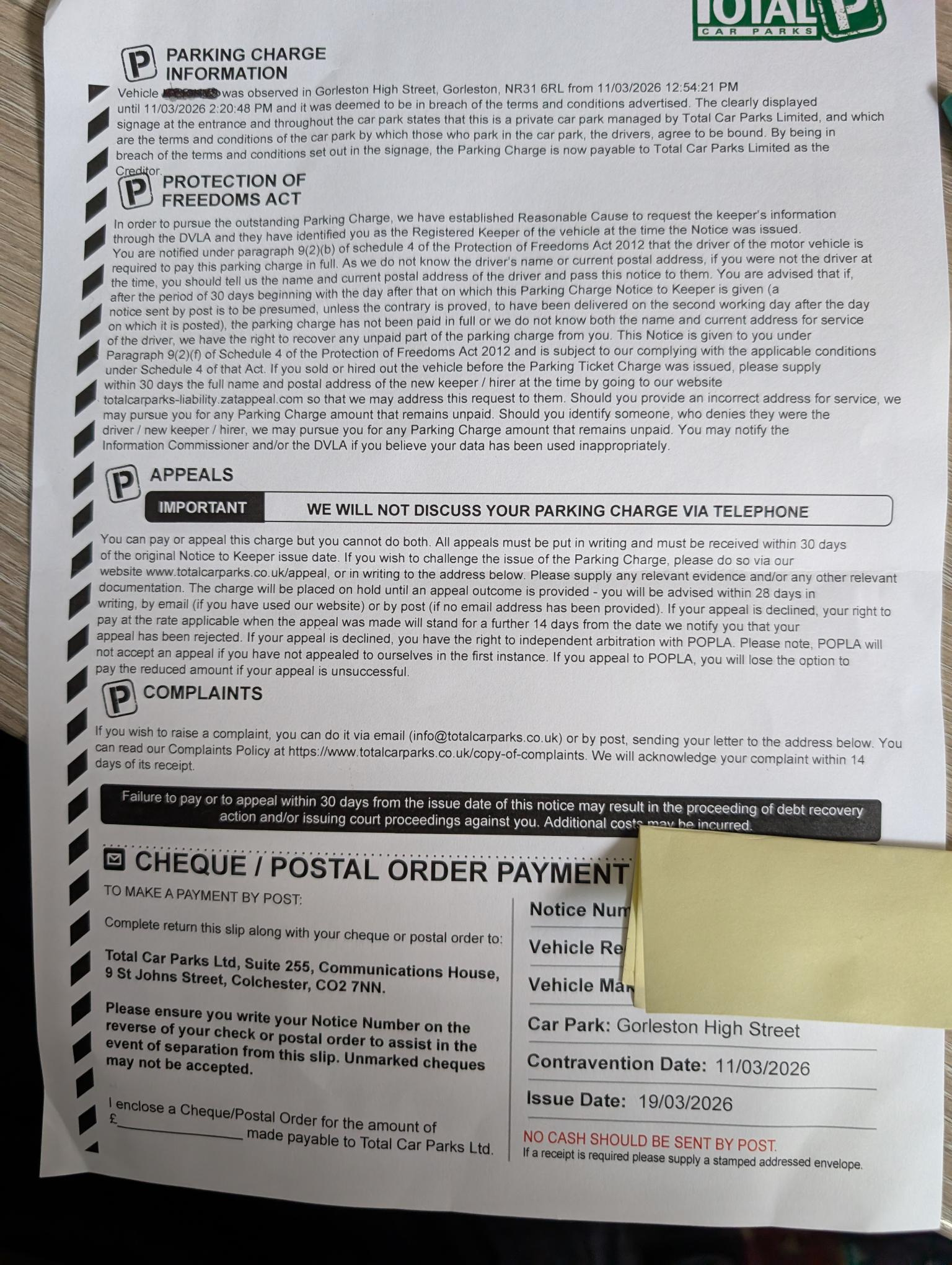 PRIVATE 'PCN'? DON'T PAY BUT DON'T IGNORE IT (except N.Ireland).