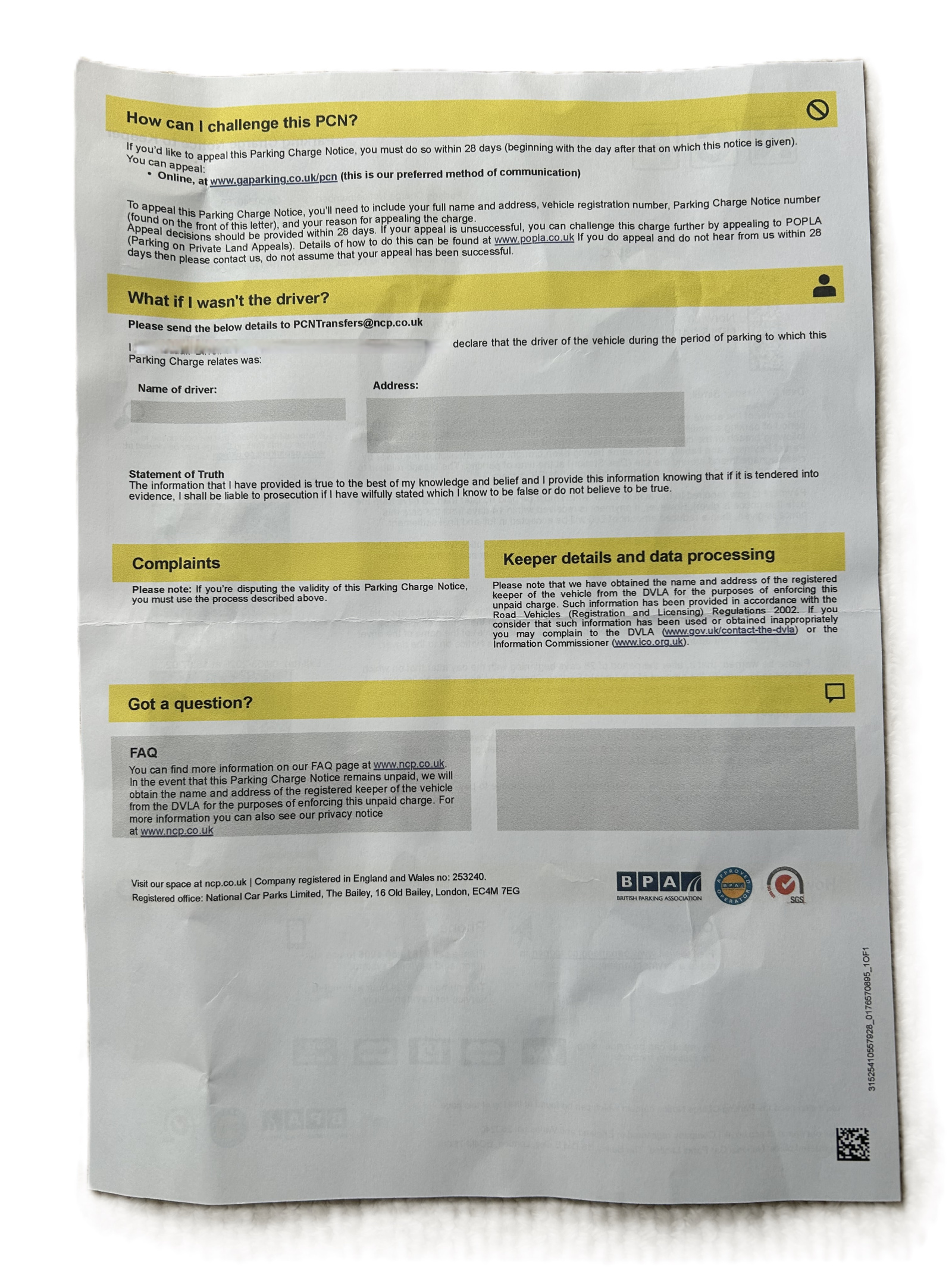 It's also NCP. Come on… that company is in administration! Do you think they have staff to fight POPLA appeals? Nope.