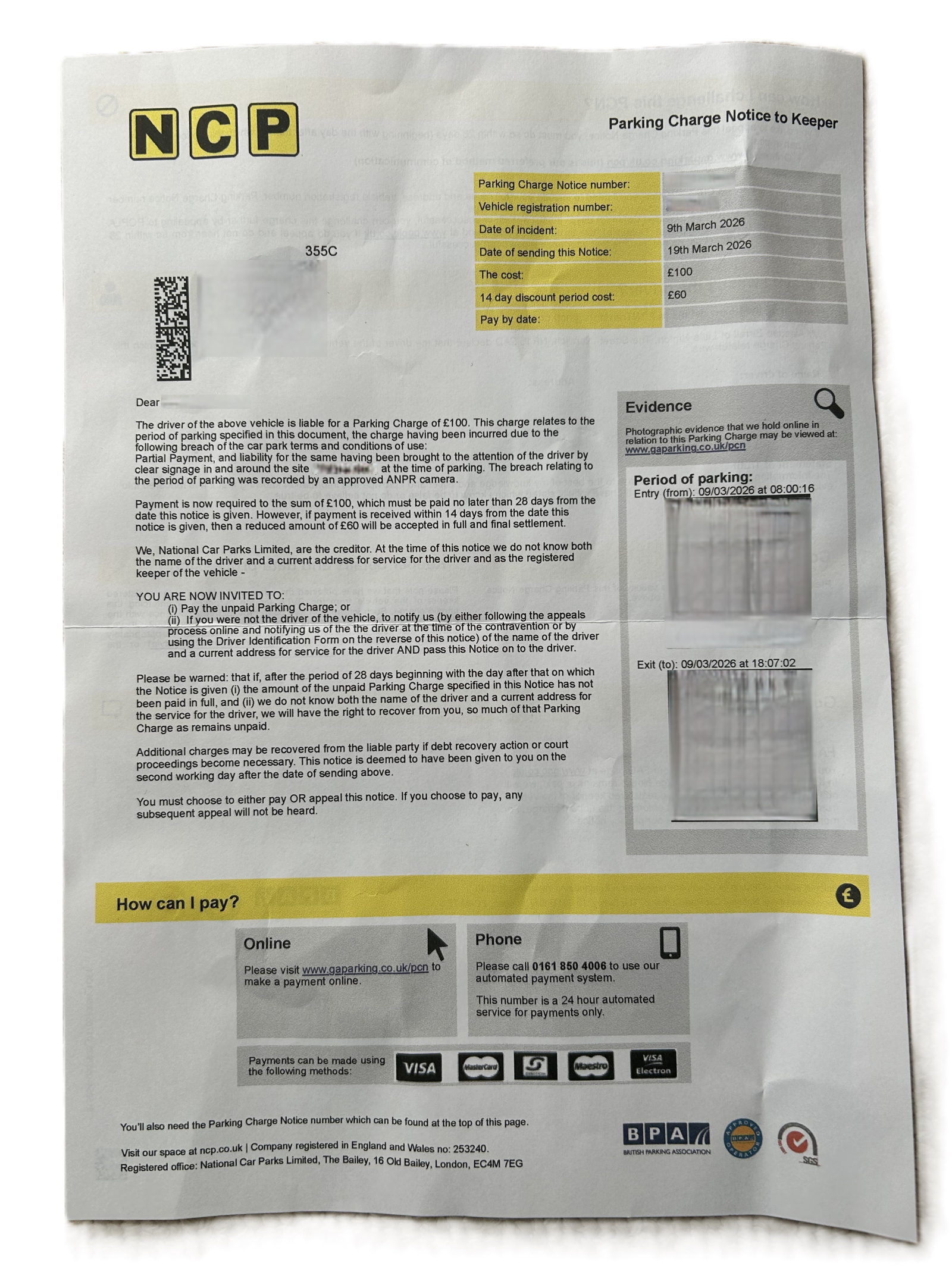 PRIVATE 'PCN'? DON'T PAY BUT DON'T IGNORE IT (except N.Ireland).