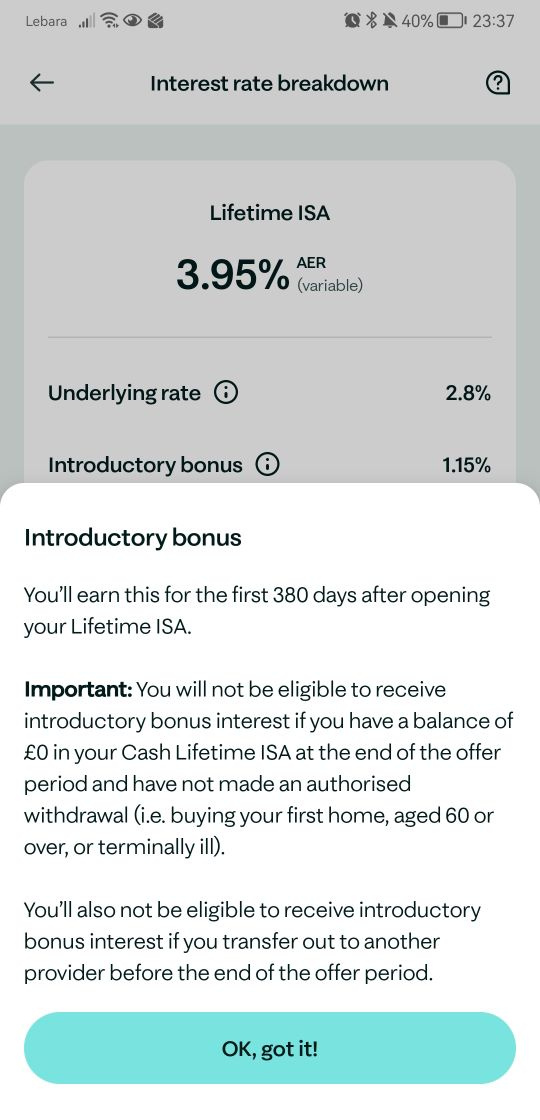 The plan was to transfer this to a Dodl Stocks & Shares LISA on the 6th April. But it says there's an introductory bonus which expires on 9th June……. So does the below now throw a spanner in the works: