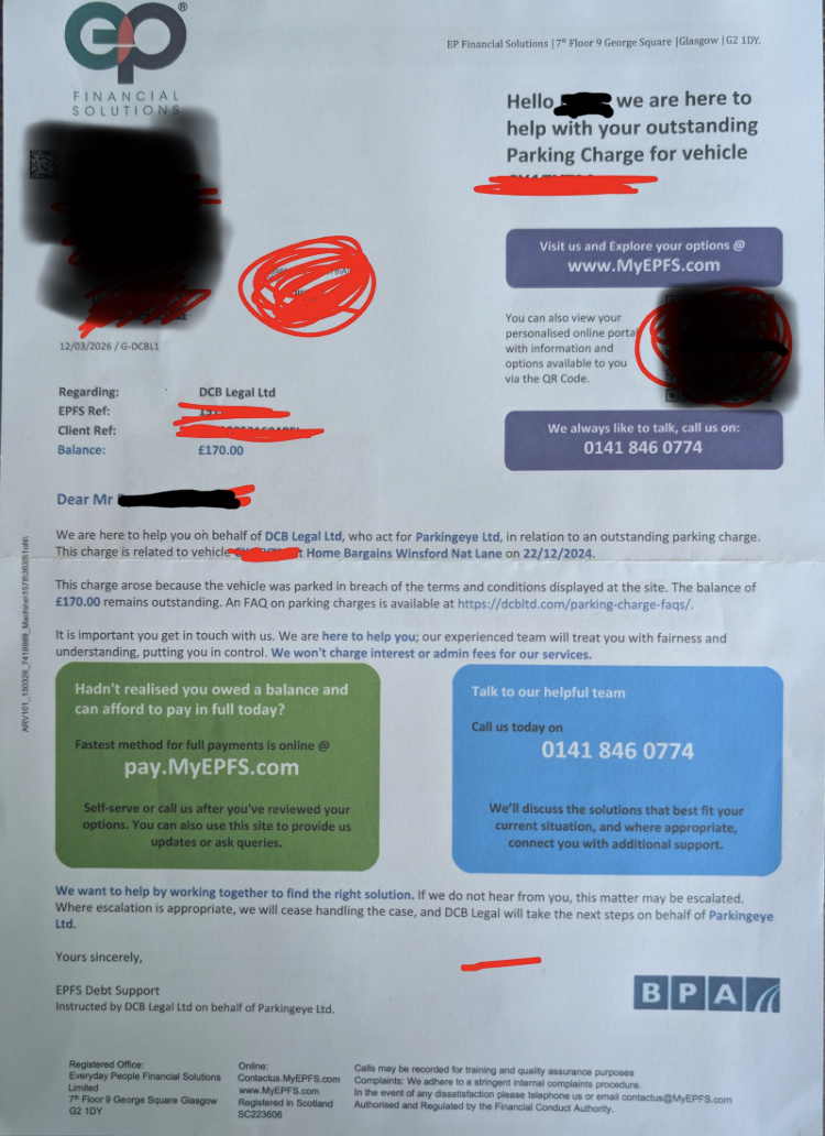 They are r aching out following a parking notice from DCB around 18 months. I made complaints to DCB, the land owner and the usual driving authorities but they have continued to send letters and phone. DCB rejected my complaint. I have not engaged otherwise.