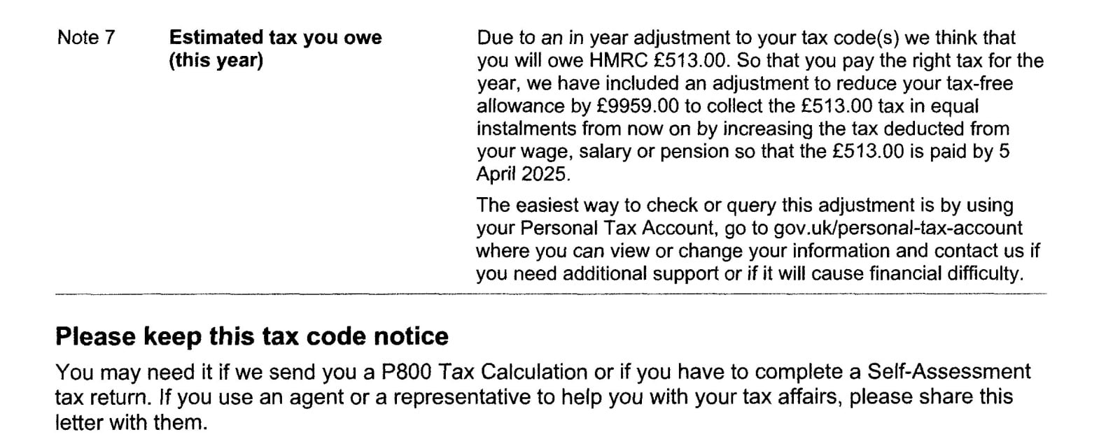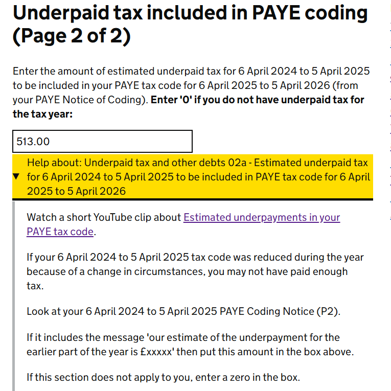 If there's no underpaid 2024/25 tax being collected via PAYE in 2025/26, then the answer to the first question is zero.