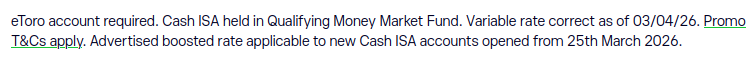 Also note, that eToro isn't a UK ISA manager, MoneyFarm is the actual provider.