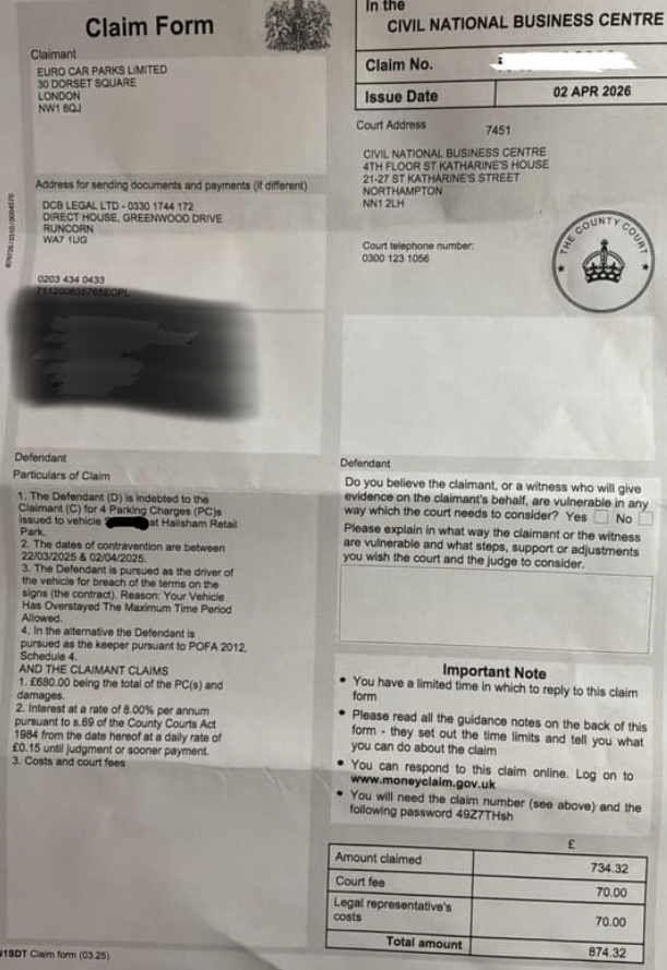 I have ignore all the previous fine letters until I got the letter before claim and at that point I responded by emailing DCB explaining that I had this in place prior and I didn’t knowingly enter into an agreement upon parking in the car park. I have requested the Extention online to 28 days stating that I will deputing in full - the charge is for £874.32 they have already tried to reduce this to £400 when I responded to the letter before claim, which I obviously didn’t accept.