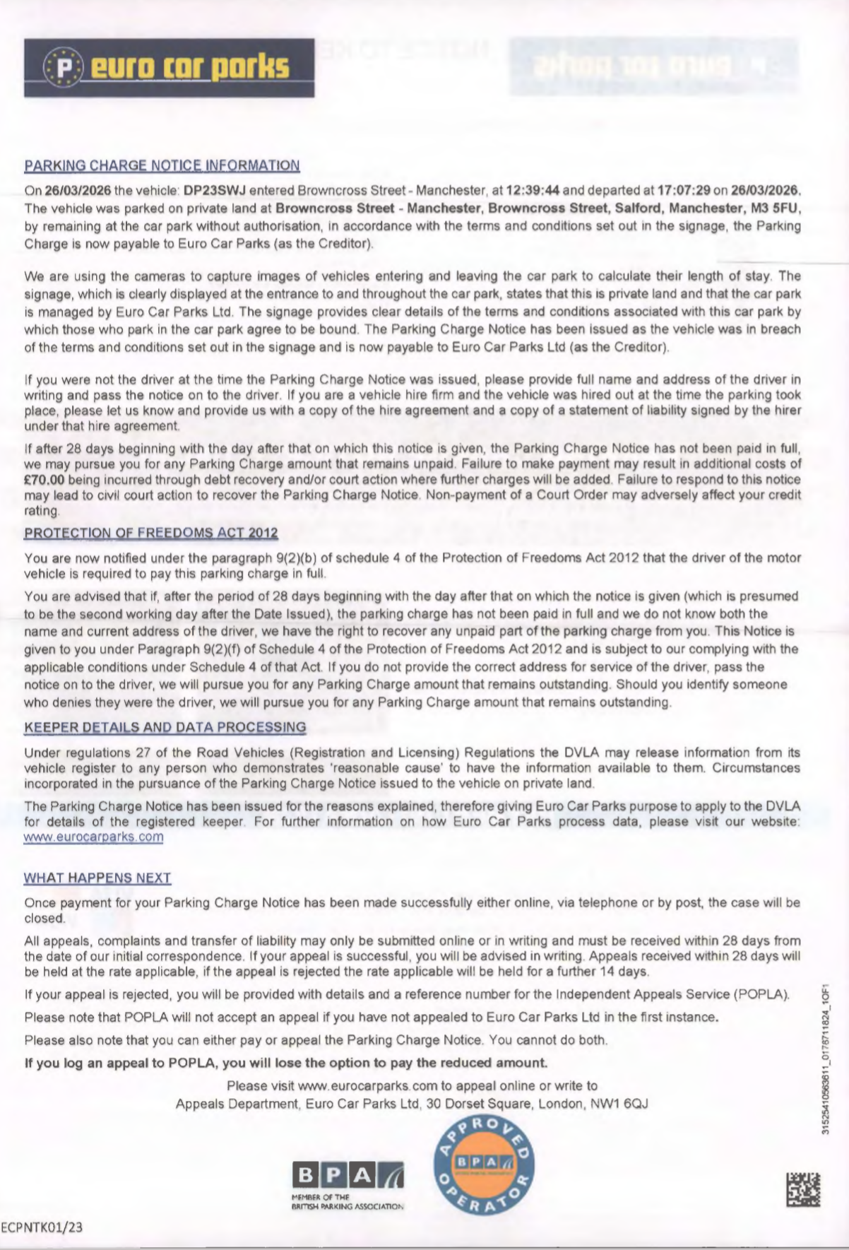 Euro car parks pcn