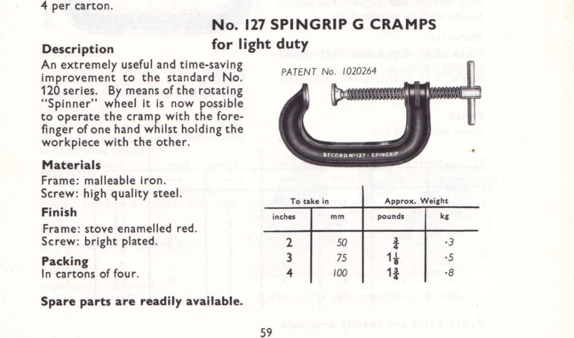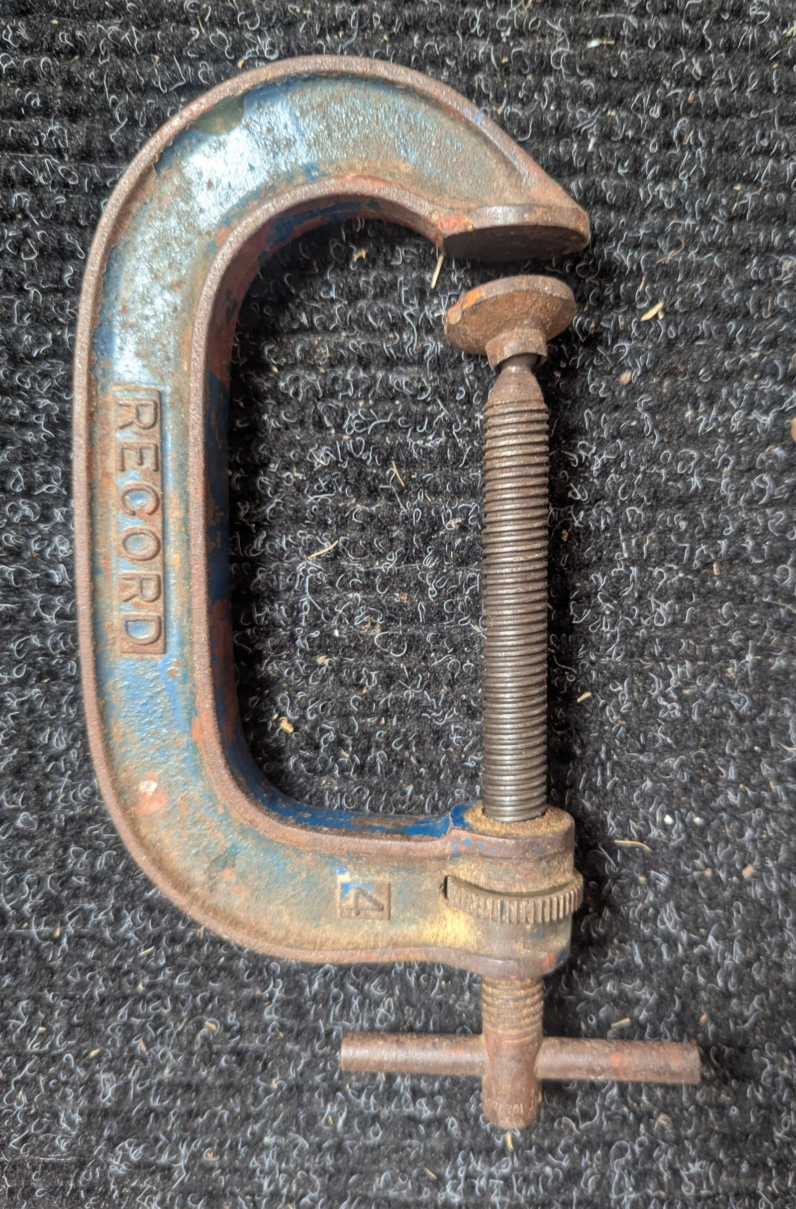 I have this G-Clamp, size 4, good ol' Record make. But, this one has an added serrated thumb wheel which I haven't seen before.