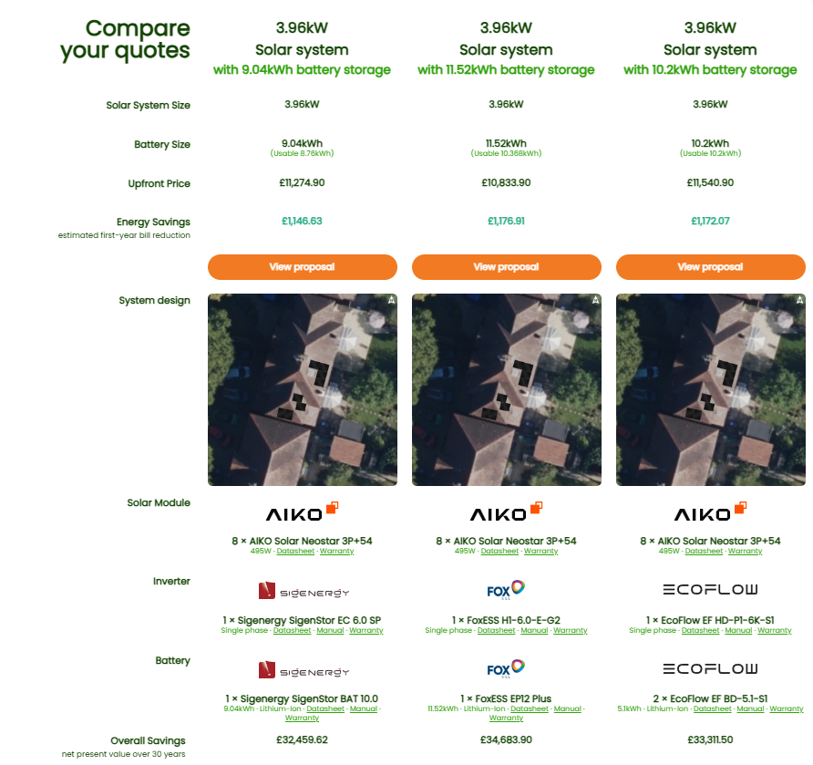 They have provided 3 separate proposals and I'm just trying to weigh up the pro's and con's of each - currently I'm leaning towards the EcoFlow battery and inverter.