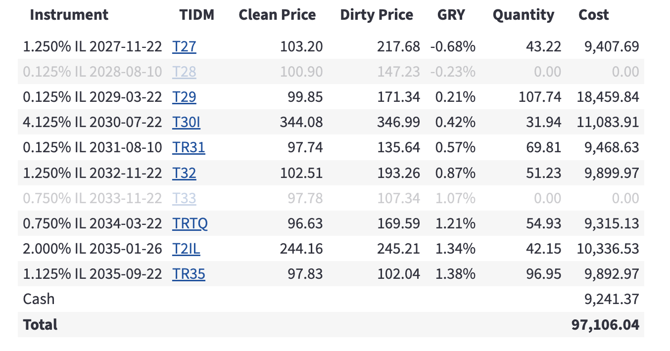 If you change the parameters, the tool will buy different gilts in different quantities. T28 and T33 might come back into play.