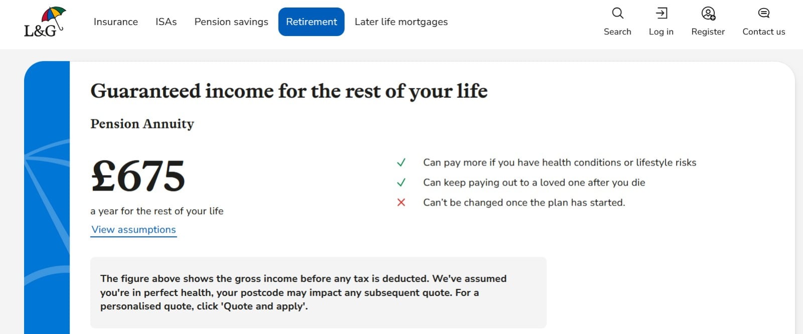 So if you take that at age 66 and live to above 79 technically you'll be winning.Don't forget that those figures are before tax, so the taxman will be taking a chunk of that £96, probably just below the full 25%.