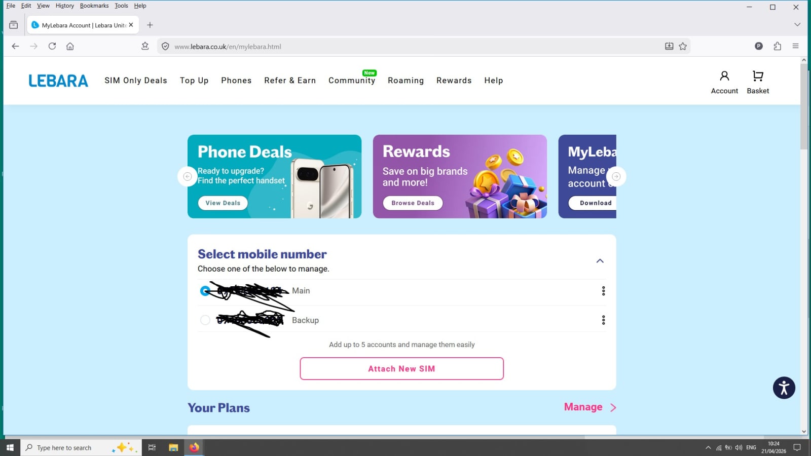 Fortunately my main number is with Lebara and it's possible to add the new s.i.m. to my account.