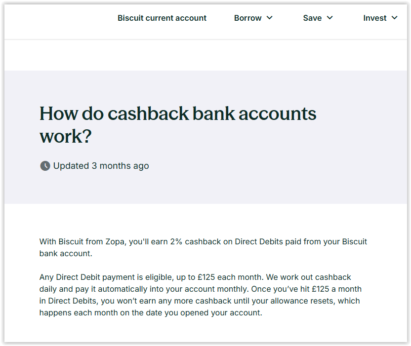 If you choose to take up a cashback offer, any cashback we give you will be calculated on the balance of direct debits that are paid from your Zopa account (subject to any maximum annual direct debit limits we advise you of) and paid to you on a monthly basis.