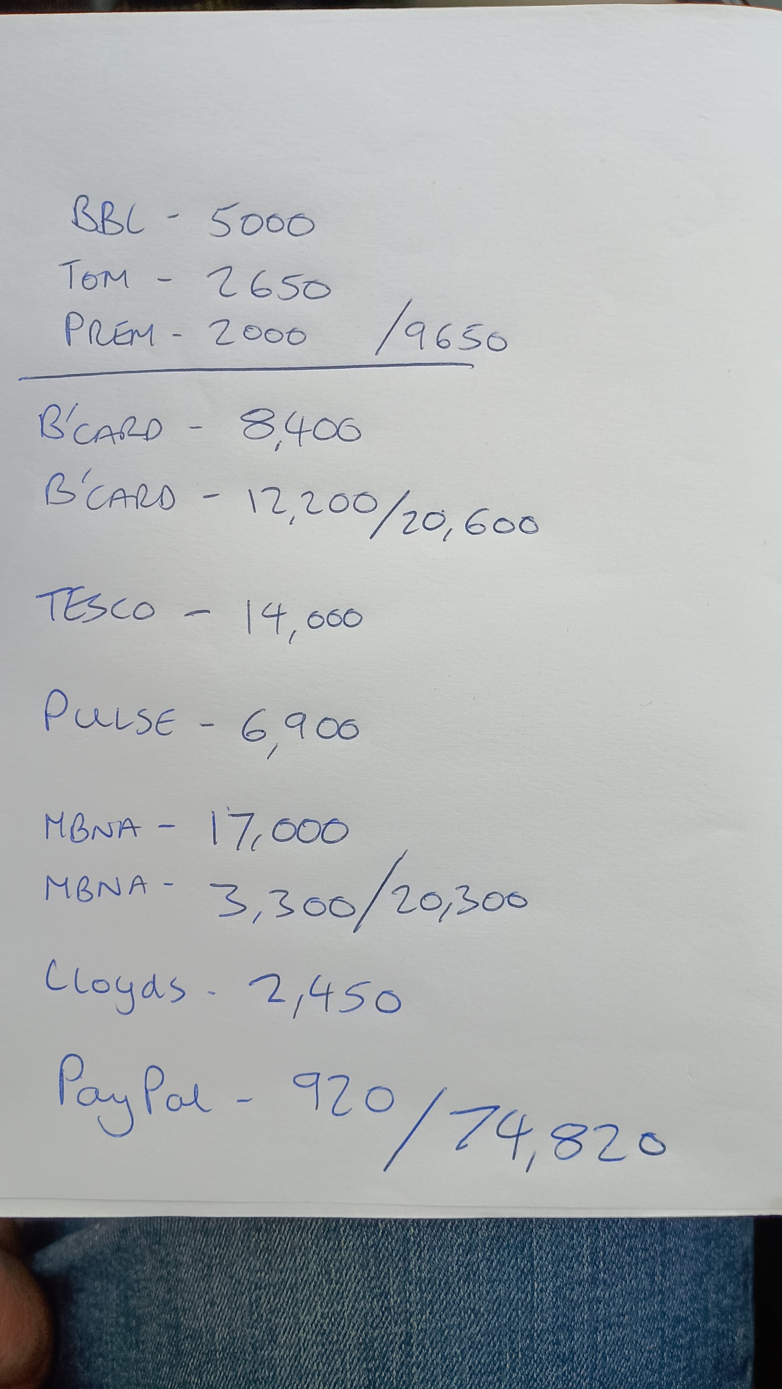 I've just totted up balances currently whilst sat in Aldi carpark. Worse than my credit report shows as the bounce back loan and business overdraft don't show on consumer credit reports. £75k debts.