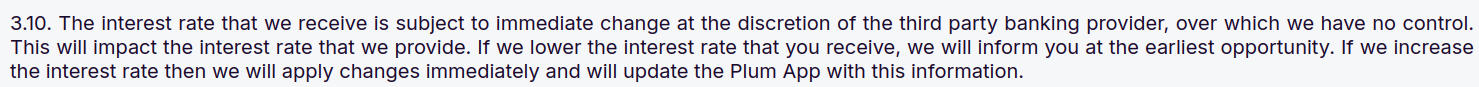 Plum Cash LISA Transfer Interest Rates