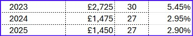 Last 12 months, full holding:Jan 25 - 2x £50Feb 25 - 1x £500Mar 25 - 1x £50Apr 25 - 2x£50, 1x £25May 25 - 1x £100Jun 25 - nilJul 25 - 1x £50Aug 25 - £250 (1x£100, 3x£50)Sep 25 - 1x £50Oct 25 - 1x £100 1x£25Nov 25 - 1x£50 2x£25Dec 25 - 1x £100 2x£25one year total £1550 giving a 3.1% return over the year